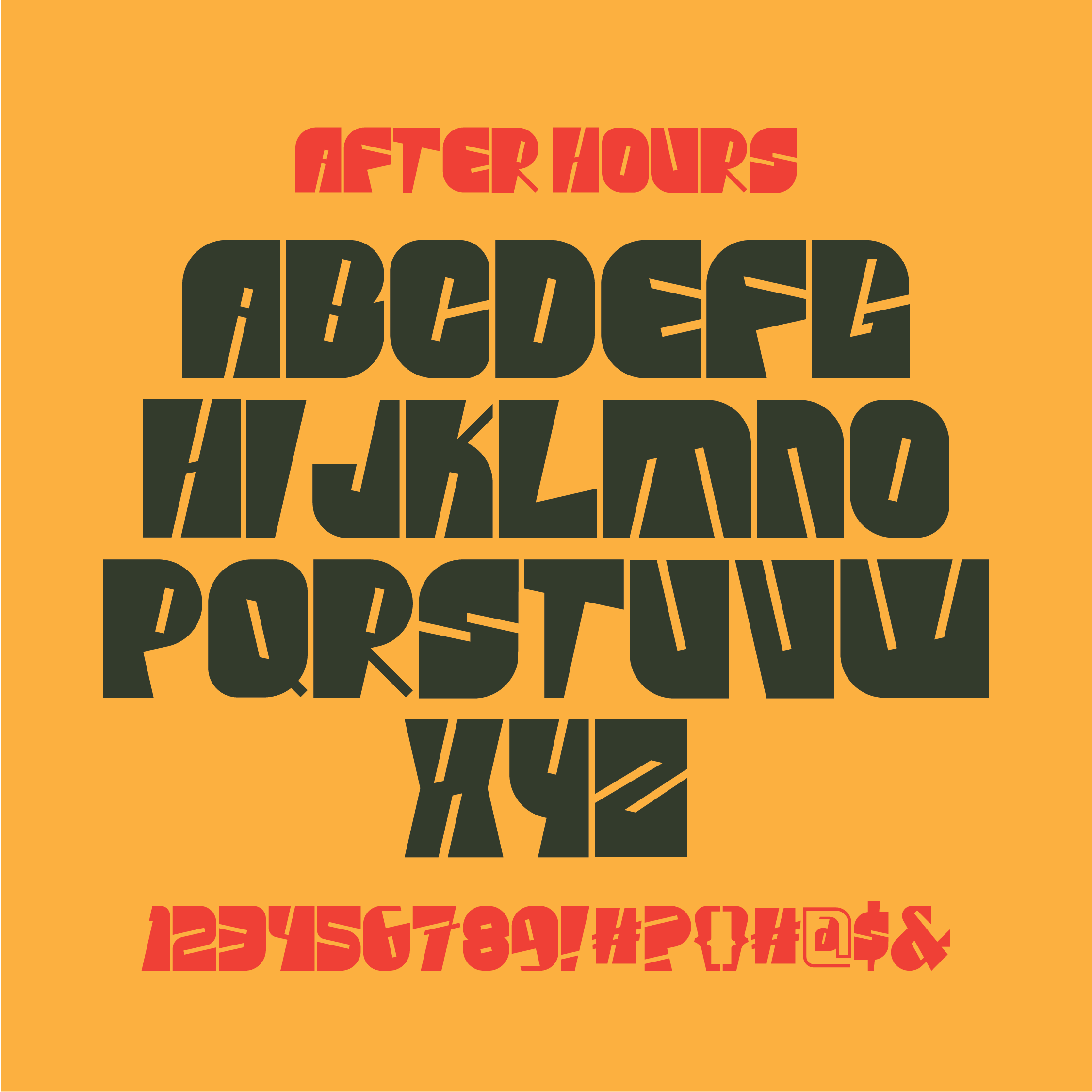 After Hours is a sharp, angular display font built for high-impact visuals and digital-first design. Inspired by techno, cyberpunk, and retro-futuristic aesthetics, this typeface blends geometric edges with electronic rhythm, making it perfect for posters, logos, gaming titles, album covers, UI headers, and motion graphics. With its dynamic letterforms and strong visual presence, After Hours delivers bold attitude and high-tech energy across print and screen.